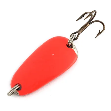 La punzonatura sul retro argentato rivela la cura costruttiva del Sølvkroken Nordic, un ondulante di produzione norvegese che misura 3 cm. Con un peso di 7 g, questo specifico esemplare è identificato dal codice prodotto 23271 e vanta una finitura UV rosa acceso e argento ad alto contrasto. L'armatura originale comprende anellini spaccati e un'ancoretta bronzata che si mantiene affilata e funzionale. Valutata con uno stato di 4/5, l'esca è ben conservata e presenta solo lievi segni di usura sulla vernice in prossimità dei punti di attacco degli anellini. La sua robusta struttura in metallo e il profilo a goccia caratterizzano un'esca progettata per raggiungere grandi distanze di lancio e per un recupero costante a diverse profondità.