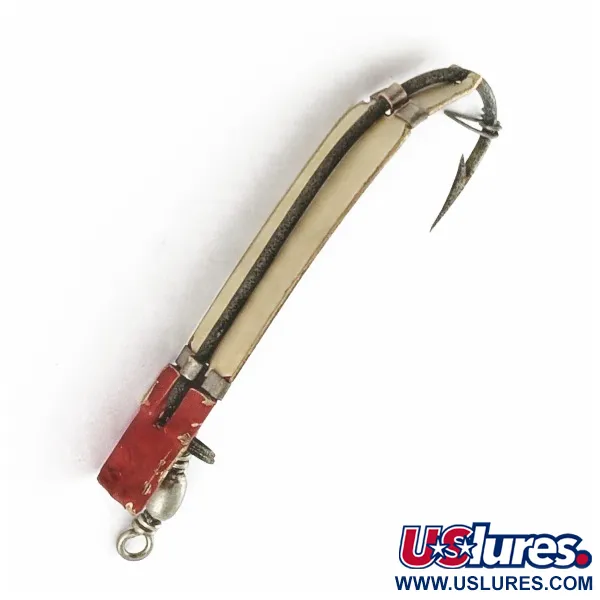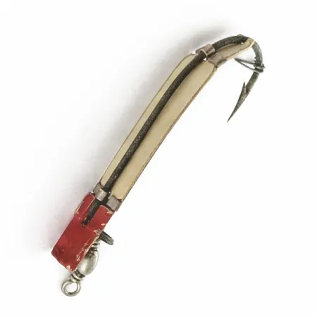 Con una lunghezza di 4,5 cm, questa esca per canna da mosca bianca e rossa è una creazione classica di South Bend risalente agli anni '40. Contrassegnata dal codice prodotto 24087, la Trix-Oreno ha un peso leggero di 2 g ed è stata specificamente progettata per aiutare i pescatori a mosca a raggiungere strati d'acqua più profondi. Il design è caratterizzato da un corpo affusolato color osso, fissato all'amo mediante bande metalliche e rifinito con una vivace testa rossa. Valutata con uno stato di conservazione di 4/5, l'esca mostra solo lievi segni del tempo, con la vernice e le parti metalliche che rimangono ben preservate. Storicamente, South Bend ha concepito questo artificiale per essere lanciato trasversalmente o a valle in corsi d'acqua correnti, dove affonda in modo naturale per imitare la vita acquatica. Questo movimento si è rivelato efficace per insidiare le trote all'inizio della stagione o per attirare pesci di taglia maggiore in profondità durante l'estate. La dotazione include una piccola girella metallica sul punto di attacco e un amo singolo rivolto verso l'alto nella parte posteriore.