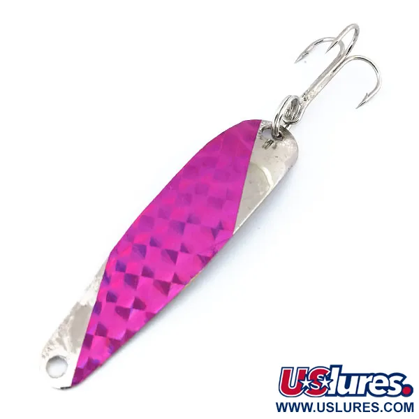 Catturando la luce con un distintivo motivo a scaglie, il nastro olografico viola copre la faccia di questo ondulante argentato. Sul retro concavo è chiaramente impresso il nome "STINGER", che ne indica l'origine come creazione Advance Tackle degli USA. Con un peso di 5 g (3/16 oz) e una lunghezza di 5,5 cm (2 1/4 pollici), il profilo sottile dell'esca è progettato per applicazioni versatili sia nel lancio che nella traina. La finitura argentata e il rivestimento viola riflettente sono in condizioni eccellenti, come riflesso nella valutazione 5/5. Un'ancoretta originale affilata rimane saldamente fissata in coda. I collezionisti riconosceranno l'estetica specifica del codice prodotto 10863, che evidenzia l'attenzione del marchio per le finiture ad alta lucentezza per la visibilità in acque chiare.