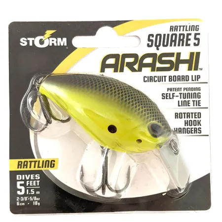 Archivio museo: Storm Arashi Rattling Square 5 Crankbait, Black Chartreuse Shad, 18g, #11335