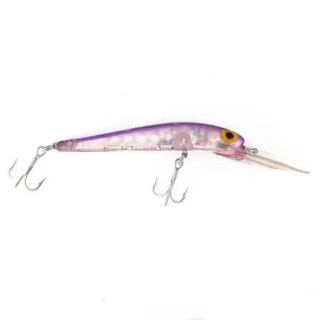 Un'accattivante finitura Purple / Rainbow Silver definisce questo reperto vintage, mettendo in mostra il classico corpo traslucido e la lamina interna che Storm ha perfezionato negli USA. Progettata per raggiungere profondità di 2 - 4 m, la paletta trasparente e allungata è un marchio di fabbrica della serie Deep Thunder Stick. Lungo 9 cm e con un peso di 8,8 g, questo esemplare riporta il codice prodotto 10918. L'esterno è in condizioni 5/5, con gli audaci occhi gialli e le pupille nere nitidi come il giorno in cui hanno lasciato la fabbrica. Consigliato per lo spinning, il twitching o la traina, in particolare per il lucioperca, questa esca galleggiante presenta il marchio "Deep Thunder Stick" chiaramente visibile lungo il lato inferiore. L'hardware consiste in due ancorette originali, che mostrano un'integrità ben conservata per un pezzo vintage.
