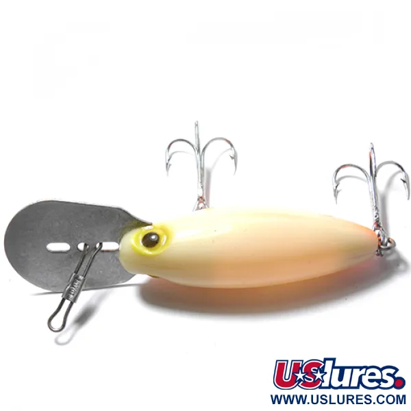 La colorazione Arancione/Giallo ricopre il corpo di questo Storm Hot'N'Tot Thin Fin, rendendolo una scelta ad alta visibilità per diverse condizioni d'acqua. Con un peso di 12 g (2/5 oz) e una lunghezza di 9 cm (3 1/2"), questa esca galleggiante è progettata per raggiungere profondità di 1,5–4 m (5–13 ft). Identificato dal codice prodotto 0042, il design presenta l'iconica paletta metallica sovradimensionata con attacco integrato, una configurazione sinonimo di prestazioni nel deep-diving per la linea vintage Storm prodotta negli USA. Questo esemplare, classificato con una condizione di 5/5, mantiene la sua finitura originale e ancorette affilate senza segni di usura. È stato specificamente concepito per insidiare lucioperca, persici e lucci, sia nel drifting che nel lancio o nella traina. Il passaggio dalla metà superiore giallo-crema pallido al ventre arancione vivido è netto, completato da un occhio cerchiato di giallo che funge da punto di mira per l'attacco.