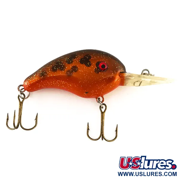 Un luccichio oro-arancio emana dal corpo di questo crankbait da profondità, accentuato da evidenti macchie scure lungo il dorso superiore. Questo Strike King 4XD, identificato dal codice prodotto 7913, è un'esca compatta da 5 cm (2") progettata per profondità elevate. Con un peso di 10 g (1/3 oz), presenta un profilo zavorrato che gli consente di raggiungere un range d'azione di 2,4–3,6 m (8–12 ft). Gli occhi rossi vivaci creano un forte contrasto con la finitura glitterata, che non mostra segni di usura, meritando una valutazione di stato di 5/5. Realizzato come modello galleggiante e rumoroso, incorpora rattle interni per generare suono durante il lancio o la traina. La paletta trasparente e allungata è fissata saldamente al muso, aiutando l'esca a raggiungere gli strati più profondi preferiti da lucioperca e lucci. Gli ami tripli con finitura bronzata sono collegati tramite robusti anelli spaccati, mantenendo l'integrità dei componenti originali.