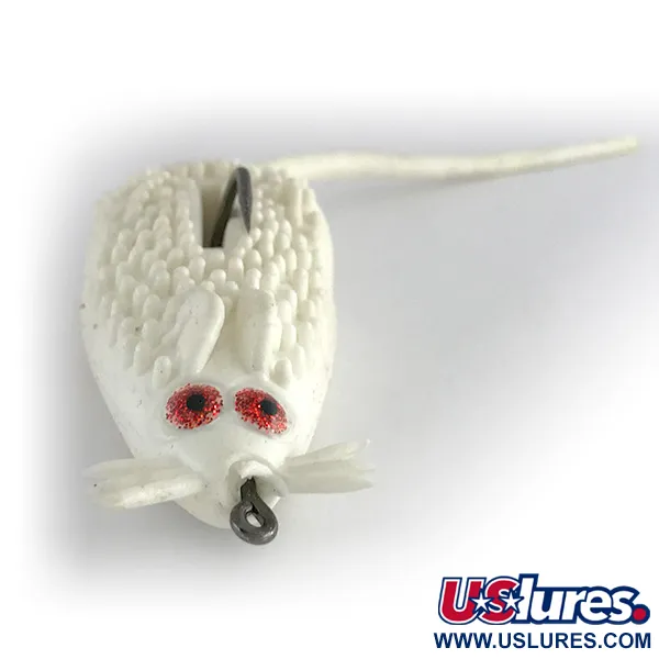 Una nitida finitura bianca ricopre il corpo strutturato e irregolare di questo classico roditore di superficie, aiutandolo a risaltare contro la fitta vegetazione. Originario degli USA, questo Strike King King Rat, catalogato con il codice 8065, rappresenta un'epoca fondamentale nel design antialga per la pesca in coperture pesanti. Il corpo morbido è dotato di un amo singolo rivolto verso l'alto, protetto da una profonda scanalatura lungo il dorso per evitare incagli. Gli occhi rossi scintillanti offrono un bersaglio visivo distinto, mentre i baffi integrati e la coda lunga ne arricchiscono il profilo. Con 1/2oz (14g) e 2 1/4" (6cm), il rapporto peso-dimensioni è bilanciato per il lancio tra le ninfee dove spesso si nascondono lucci e persici. Questo particolare esemplare è in ottime condizioni, valutato 5/5, con la colorazione bianca e i componenti flessibili rimasti eccezionalmente ben conservati. L'occhiello di fissaggio è posizionato direttamente sul muso per un recupero dritto e costante attraverso gli ostacoli più ostici.