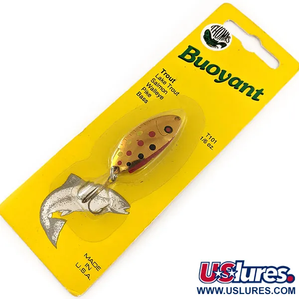 Rifinito nel distintivo schema Copper Trout con punti neri e rossi su base dorata, questo ondulante Thomas Buoyant vintage è conservato nella sua confezione originale. Prodotto a Hawley, Pennsylvania, questo cucchiaino da 4 cm (1 1/2") è un pezzo classico della storia dell'attrezzatura americana firmata Thomas Spinning Lures, Inc. Il peso di 4,7 g (1/6 oz) lo rende una scelta versatile per insidiare trote, salmoni e persino lucioperca in varie condizioni d'acqua. Questo specifico esemplare riporta il codice prodotto T101B-G e ha una valutazione di condizione 6, il che indica che è completamente nuovo e non ha mai toccato l'acqua. La dotazione include un'ancoretta di alta qualità fissata tramite un robusto anellino brisè, standard per questi ondulanti prodotti a Hawley. Sul retro del cartoncino giallo, istruzioni dettagliate suggeriscono che l'esca è efficace se lanciata trasversalmente alla corrente nei fiumi o recuperata a diverse profondità nei laghi. Il timbro "MADE IN U.S.A." nell'angolo in basso a sinistra della confezione testimonia la lunga tradizione manifatturiera del marchio.