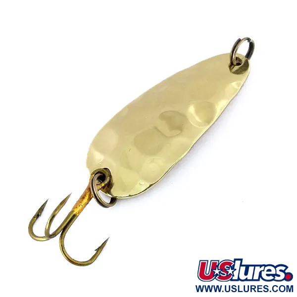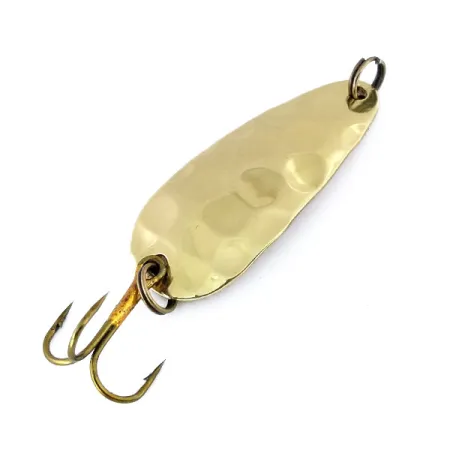 La scritta stampata a mano sul retro di questo ondulante in ottone recita "RICHARDS 1/5 OZ CANDU IT", un tributo personale al fondatore Richard Shubert che fondò il marchio Thomas a metà degli anni '40 dopo essere arrivato negli USA dalla Cecoslovacchia. Catalogato con il codice prodotto 10715, l'esca ha un peso di 5 g (3/16 oz) e una lunghezza totale di 4 cm (1 1/2"). Una distinta trama martellata copre la faccia convessa, fornendo un'estetica tradizionale per il casting o la traina. La componentistica consiste in un amo triplo bronzato e due robusti anelli spaccati, tutti eccezionalmente puliti, contribuendo a una valutazione di condizione 5/5 per questo esemplare vintage. Queste superfici in ottone lucido conservano la lucentezza originale e la nitidezza delle incisioni, onorando un produttore che venne in America per realizzare il suo sogno di produrre attrezzatura da pesca di qualità.