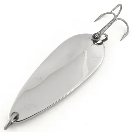 La nichelatura conferisce a questo ondulante da 21g (3/4oz) un riflesso ad alta visibilità che è stato un elemento essenziale nelle cassette da pesca per decenni. Sul davanti è chiaramente stampato il marchio 'TONY ACCETTA 7', che ne conferma l'origine come classico artificiale prodotto negli Stati Uniti. Con una lunghezza di 6,5 cm (2 1/2"), il corpo metallico è abbastanza solido per lanci a lunga distanza o per la traina. Questo articolo, catalogato con il codice prodotto 13146, è in condizioni 4/5, con una superficie ben mantenuta e solo alcuni leggeri segni. La componentistica è completa, con anellini spaccati in stile originale e un robusto amo triplo.