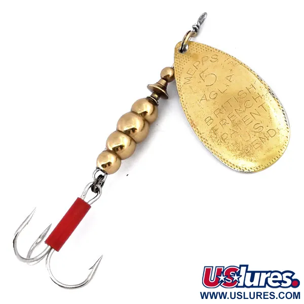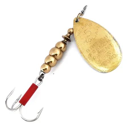 Archivio museo: Mepps Aglia 5 Cucchiaino rotante, Ottone, 14g, tubicino rosso, #10601
