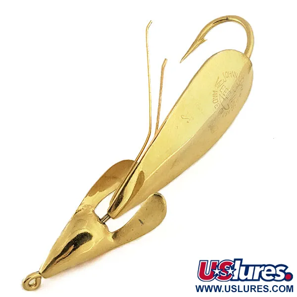 Splendente in una ricca finitura dorata, questo esemplare incarna l'ingegnosa ingegneria che Johnnie O'Neil ha portato nel mondo della pesca da Akron, Ohio, a partire dal 1957. Con una lunghezza di 7 cm (2 3/4") e un peso di 14 g (1/2 oz), il Weed Wing 3 è un pezzo significativo della storia dell'attrezzatura americana di metà secolo. Il corpo in metallo stampato presenta l'incisione distintiva associata al brevetto di O'Neil del 1962, un design che fu infine venduto alla Harrison Industries a metà degli anni '60. Per pescare tra la vegetazione fitta, l'artificiale è dotato di tre sottili protezioni in filo metallico che proteggono l'ampio amo singolo integrato. Identificato dal codice prodotto 11450, l'esemplare è in condizioni eccellenti, classificato 5/5, con superfici riflettenti e componentistica ben conservate. La sua evoluzione evidenzia il passaggio di questo modello da piccola invenzione dell'Ohio a pilastro della produzione successiva di Panther Martin.