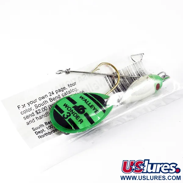 Archivio museo: South Bend Walleye Wonder 3 Spinner, Verde-Bianco, 17g, Amo oro, #3697