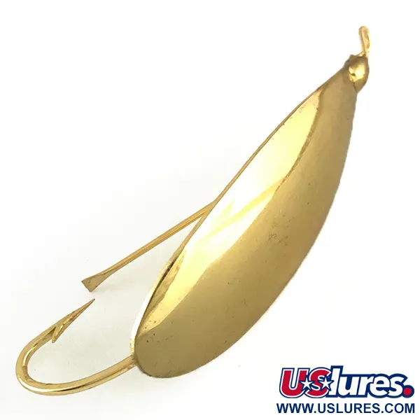 Splendente con una classica finitura dorata, questo modello rappresenta il leggendario design anti-incaglio perfezionato da Louis Johnson nel 1920. Con un peso di 6 g (3/16 oz), la costruzione in una specifica lega di rame e zinco di questo cucchiaino ondulante presenta uno spessore maggiore al centro, che aiuta a mantenere l'assetto durante il recupero. Questo Weedless Johnson Silver Minnow, identificato dal codice prodotto 6698, misura 4,5 cm (1 3/4") e presenta l'iconico amo con guardia integrata per navigare nella vegetazione fitta. Valutato 5/5, l'artificiale mostra la placcatura di alta qualità tipica della vecchia produzione statunitense prima della delocalizzazione. La superficie dorata produce lampi diretti verso il basso e lateralmente mentre il corpo oscilla con un angolo di 270 gradi. Poiché il movimento oscillatorio rimane costante anche aggiungendo un trailer, molti collezionisti e pescatori lo abbinano ancora alla cotenna di maiale (pork rind) per imitare un pesce esca in difficoltà. L'amo singolo è posizionato per rimanere rivolto verso l'alto, evitando gli incagli e rimanendo libero per la ferrata dal basso.