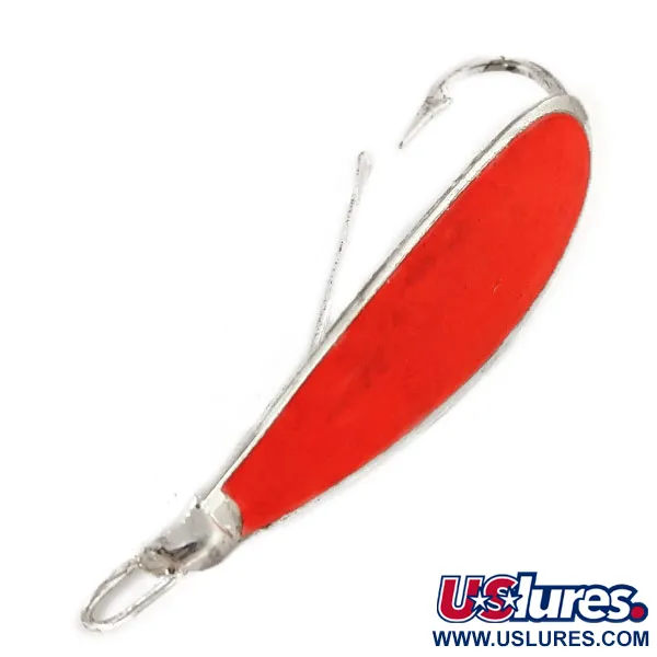 Una vivace finitura arancio neon ricopre la faccia di questo ondulante da 6 cm (2 1/4"), fornendo un contrasto ad alta visibilità rispetto al corpo placcato in argento. Questo Weedless Johnson Silver Minnow UV, con codice prodotto 12487, pesa 12 g (2/5 oz) e rappresenta una moderna evoluzione cromatica del design originale di Louis Johnson del 1920. A differenza delle finiture cromate standard, questo esemplare utilizza la placcatura in argento per produrre un riflesso più luminoso e bianco. Lo strato superiore arancione è specificamente progettato per la reattività ai raggi UV; in condizioni di scarsa illuminazione, emette un bagliore profondo e luminoso, come mostrato nelle immagini al buio. La struttura presenta un ondulante in lega rame-zinco notevolmente più spesso al centro, una geometria che aiuta a mantenere l'amo singolo in posizione verticale. Questo bilanciamento, combinato con la protezione antialga in filo metallico, consente di pescare tra ninfee fitte o legnaie. Trattandosi di un modello vintage prodotto negli USA, la qualità costruttiva riflette le specifiche originali prima che la produzione venisse spostata all'estero. La placcatura in argento e la vernice reattiva ai raggi UV mostrano pochissima usura e la componentistica rimane strutturalmente solida, conferendo a questa esca una valutazione di 4/5.