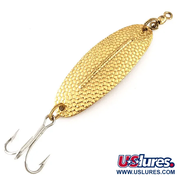 La finitura in Oro martellato conferisce a questo classico canadese da 18 g (2/3 oz) una superficie testurizzata e riflettente che imita le squame naturali catturando la luce da più angolazioni. Con una lunghezza di 8,2 cm (3 1/4"), questo Williams Wabler presenta la caratteristica nervatura longitudinale rialzata del produttore: una soluzione strutturale progettata per mantenere la stabilità durante le varie velocità di recupero. Identificato dal codice prodotto 12284, l'ondulante mette in mostra la placcatura di alta qualità per cui Williams è famosa, un segno distintivo della loro serie più celebre, spesso utilizzata per la pesca al luccio o al sandre. La componentistica di questo esemplare include un robusto amo triplo collegato tramite un anello spaccato e una girella a barile sulla punta per gestire la torsione della lenza. Classificato con una condizione di 5/5, le superfici metalliche e le minutaglie appaiono pulite e ben conservate. Questo modello 12284 rappresenta una parte significativa della storia dell'attrezzatura canadese, progettato specificamente per offrire prestazioni costanti grazie alla sua esclusiva geometria stampata.
