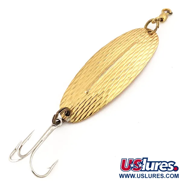 Con una lunghezza di 8,5 cm (3 1/4"), la distintiva nervatura longitudinale di questo cucchiaino prodotto in Canada è la sua caratteristica fisica più definita. Questo Williams Wabler, identificato dal codice prodotto 12654, presenta una classica finitura Oro su una superficie fortemente testurizzata, progettata per catturare e riflettere la luce. Con un peso di 18 g (2/3 oz), il corpo metallico mantiene una lucentezza brillante e pulita, con una valutazione di 5/5. L'armatura consiste in un'ancoretta argentata e una girella color ottone fissata sulla parte anteriore. I collezionisti troveranno la chiara punzonatura del produttore sul lato concavo, segno distintivo degli standard produttivi di Williams. Il design si concentra sulla nervatura centrale rialzata, che garantisce stabilità al corpo metallico durante il lancio o la traina. Questo esemplare rappresenta un pezzo di storia dell'attrezzatura canadese, configurato specificamente per la pesca al luccio e al lucioperca.