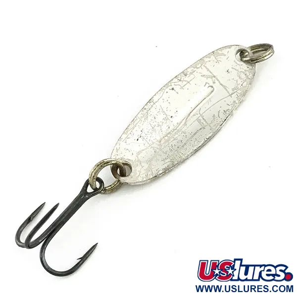 Lungo esattamente 4 cm (1 1/2"), il corpo in ottone stampato di questo classico di produzione canadese presenta la caratteristica nervatura longitudinale che definisce la serie Williams Wabler. Questo specifico modello W30, identificato dal codice prodotto 9117, si presenta con una finitura argentata e pesa appena 4 g (1/8 oz). Sebbene la placcatura in argento mostri una rete di sottili graffi superficiali dovuti a precedenti battute di pesca, mantiene una solida valutazione delle condizioni di 3/5, mostrando il carattere di un'esca che ha trascorso molto tempo in acqua. La componentistica rimane funzionale, con un set di anellini spaccati originali e un robusto amo triplo progettato per gestire lucci e sandre aggressivi. La distinta nervatura stabilizzatrice è perfettamente formata per mantenere l'ondulante in asse indipendentemente dalla velocità di recupero.