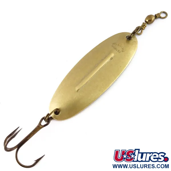 La colorazione in ottone conferisce a questo ondulante da 7g (1/4oz) un aspetto caldo e tradizionale che lo distingue dalle più moderne esche placcate. Al centro del corpo da 5,7cm (2 1/4") si trova la famosa nervatura longitudinale, un elemento strutturale progettato per fornire stabilità durante il lancio o la traina a luccio e walleye. Valutato 5/5, lo stato di questo esemplare è eccellente, con la superficie metallica che mantiene la sua brillantezza e le marcature ben conservate. Un sottile marchio del produttore è visibile vicino al punto di attacco superiore, identificando le sue origini con Williams, un marchio che ha concentrato la sua produzione in Canada dal 1978. Questo specifico Wabler W40, identificato dal codice prodotto 10001, rimane un punto fermo nella storia della pesca del nord e viene fornito equipaggiato con una robusta girella a barile e un'ancoretta affilata.