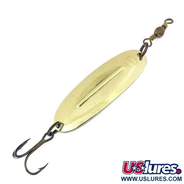 Una sporgente costola stabilizzatrice corre lungo il centro di questo ondulante da 5,7 cm (2 1/4"), una caratteristica distintiva che mantiene il Williams Wabler ai vertici delle cassette da pesca da oltre un secolo. La placcatura in oro lucido di questa esca da 7 g (1/4 oz) non mostra segni di usura, presentandosi in condizioni 5/5. Williams introdusse il modello Wabler nel 1920 e, sebbene la produzione originaria avvenisse sia a Buffalo che in Canada, questo esemplare (codice prodotto 10787) porta l'eredità della produzione canadese divenuta esclusiva nel 1978. Progettato principalmente per luccio e lucioperca, la geometria unica del W40 è studiata per mantenere un nuoto stabile durante il lancio o la traina a varie velocità. L'ancoretta con finitura scura rimane affilata ed è abbinata a una girella barilotto vintage in testa per prevenire la torsione della lenza.