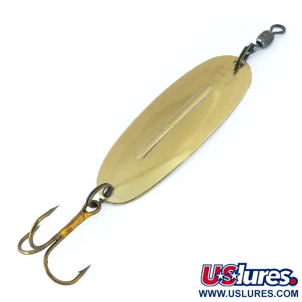Una nervatura longitudinale stampata corre lungo il centro di questo ondulante da 5,2 cm (2"), fungendo da caratteristica stabilizzante distintiva del design Williams. Con un peso di 7 g (1/4 oz), questo Wabler W40 con finitura dorata è un classico esempio di artigianato canadese Williams (Codice prodotto 10962). Questo specifico modello mette in mostra l'iconico rilievo sviluppato per la prima volta nel 1914 a Buffalo, anche se la produzione è stata centralizzata in Canada nel 1978. Mentre molti ondulanti Wabler sono famosi per la loro placcatura in argento, questa variante dorata fornisce un riflesso metallico distinto volto ad adescare lucci e sandre durante il lancio o la traina. La componentistica rimane robusta, con un'ancoretta fissata saldamente in coda e una girella fluida in testa per gestire la torsione della lenza. Un nitido stampo del produttore è visibile vicino al foro superiore, riflettendo l'eredità di un design che è rimasto un punto fermo nelle cassette da pesca sin dagli anni '20.