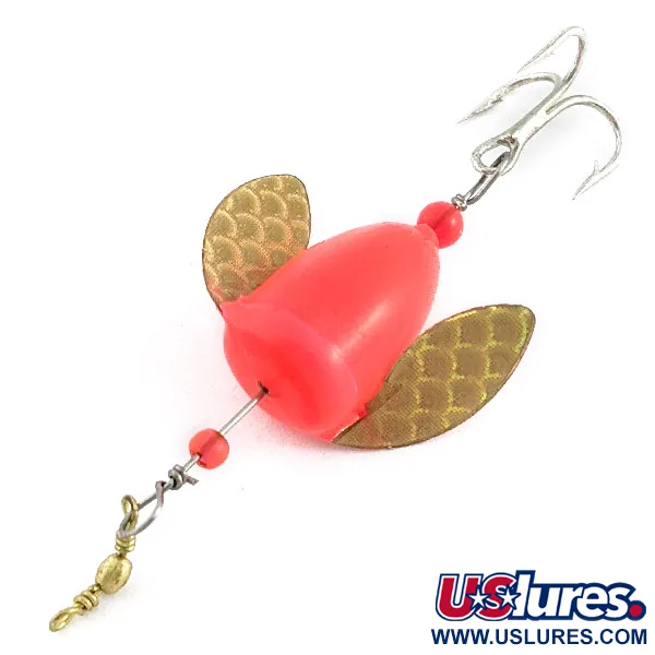 Un corpo rosso vivace definisce questo classico esemplare di Yakima Bait, un elemento indispensabile nell'arsenale del pescatore a drifting. Con un peso di appena 3/64 oz (1,5 g), il Worden’s Spin N Glo è noto per la sua galleggiabilità e la capacità di sollevare il terminale esattamente nella strike zone di specie come il salmone o la steelhead. Questo modello specifico, identificato dal codice prodotto 23025, è dotato di ali dorate rigide e riflettenti con motivo a scaglie, che emettono bagliori visivi ruotando nella corrente. Con una lunghezza di 2 1/4" (6 cm), la struttura comprende una perla rossa posizionata davanti al corpo galleggiante e un'ancoretta argentata terminale. La componentistica include una girella in ottone in testa per ridurre la torsione della lenza durante la rotazione. Prodotta negli USA, questa esca è in condizioni 5/5, senza alcun segno d'uso sulla finitura rossa o sulle ali decorate.