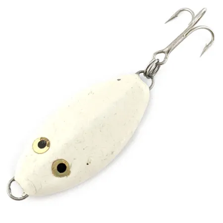 Con un peso di 31g (1oz), questo metal jig compatto di Worth è un classico esempio di attrezzatura verticale di produzione americana. Il corpo da 4 cm (1 1/2") è rivestito da una verniciatura bianca uniforme, che offre un profilo ad alta visibilità ideale per il vertical jigging in acque profonde o presentazioni verticali. Vicino all'occhiello di fissaggio, l'esca presenta occhi distintivi composti da cerchi dorati con pupille nere. Identificato dal codice prodotto 20114, questo esemplare prodotto negli USA è valutato 5/5 per le sue eccellenti condizioni, mostrando una finitura pulita e omogenea su entrambi i lati. Un'ancoretta affidabile è montata sullo split ring posteriore, progettata specificamente per tecniche di bottom-bouncing e vertical jigging in presenza di strutture pesanti o correnti sostenute.