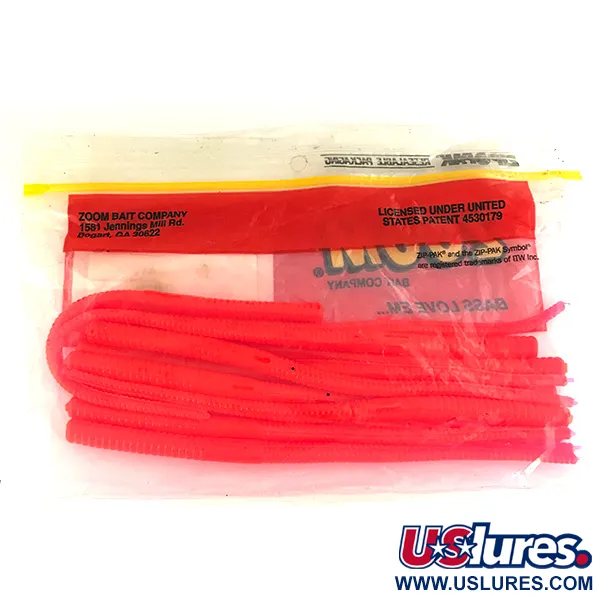 Con una lunghezza di 15 cm (6"), questi vermi in gomma rappresentano il classico profilo finesse che ha reso la Zoom Bait Company un elemento essenziale in ogni cassetta da pesca. Il colore Merthiolate ad alta visibilità è una tonalità neon specializzata, spesso utilizzata per la pesca a vista sui nidi o in acque velate dove il tracciamento visivo è fondamentale. Come parte della serie Super Salt Plus, il materiale è pesantemente impregnato di sale, una scelta progettuale pensata per influenzare il galleggiamento e la consistenza dell'esca. Questa confezione, identificata dal codice 6838, contiene 12 esemplari nuovi che mantengono la loro flessibilità originale e una pigmentazione vivace. Prodotta negli USA, l'esca presenta un corpo lamellato che si restringe in una punta sottile, ideale per presentazioni con ami sottili come lo shaky head o il rig weightless. Queste esche non sono mai state utilizzate.